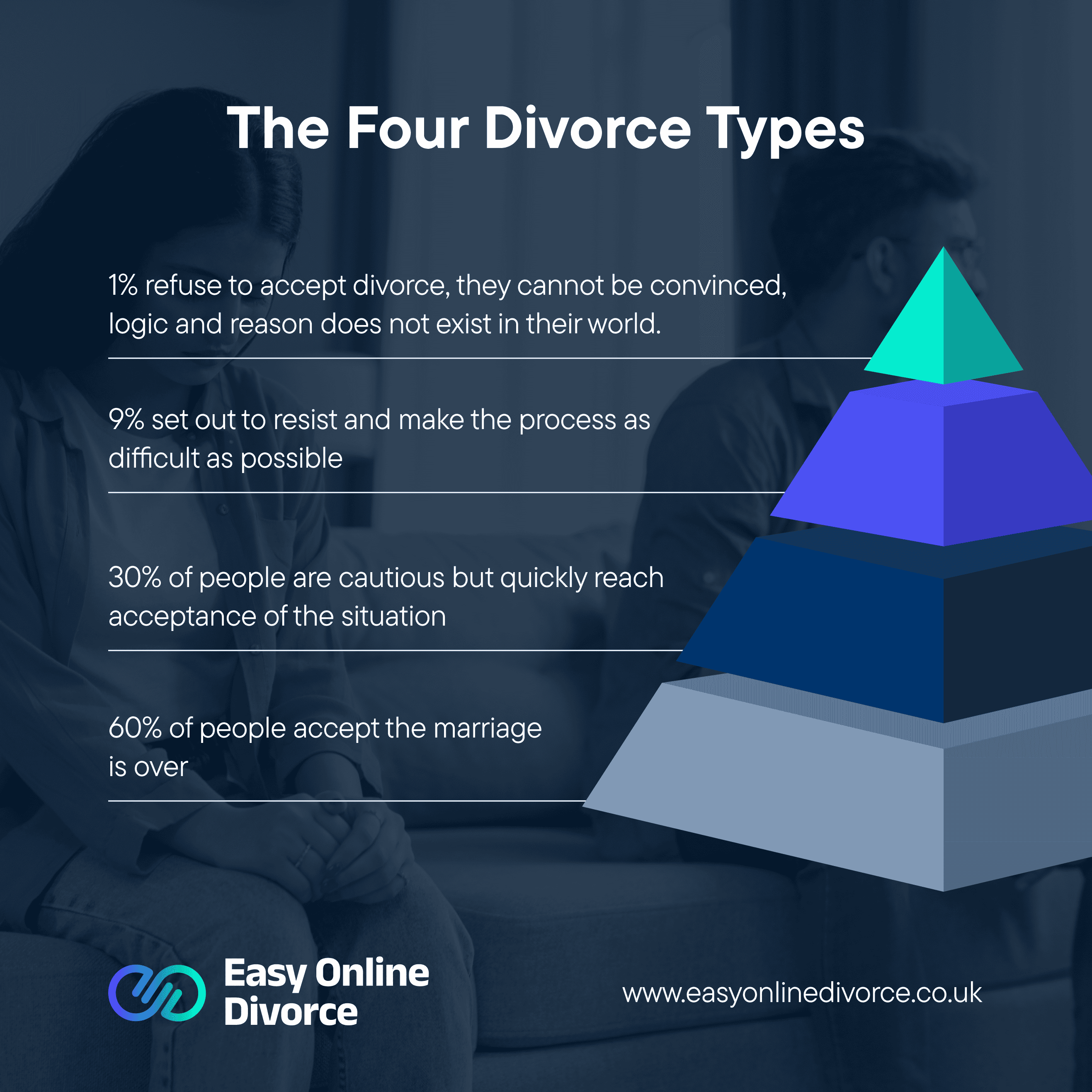The divorce process for the 1% who refuse to see reason will take longer (and cost more) because mediators, solicitors and the courts may need to be involved.